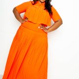 PLEATED CROPPED SHIRT AND MAXI SKIRT SET