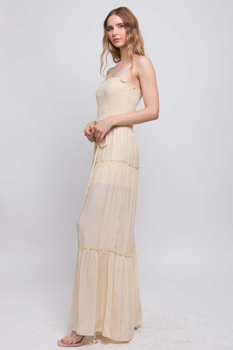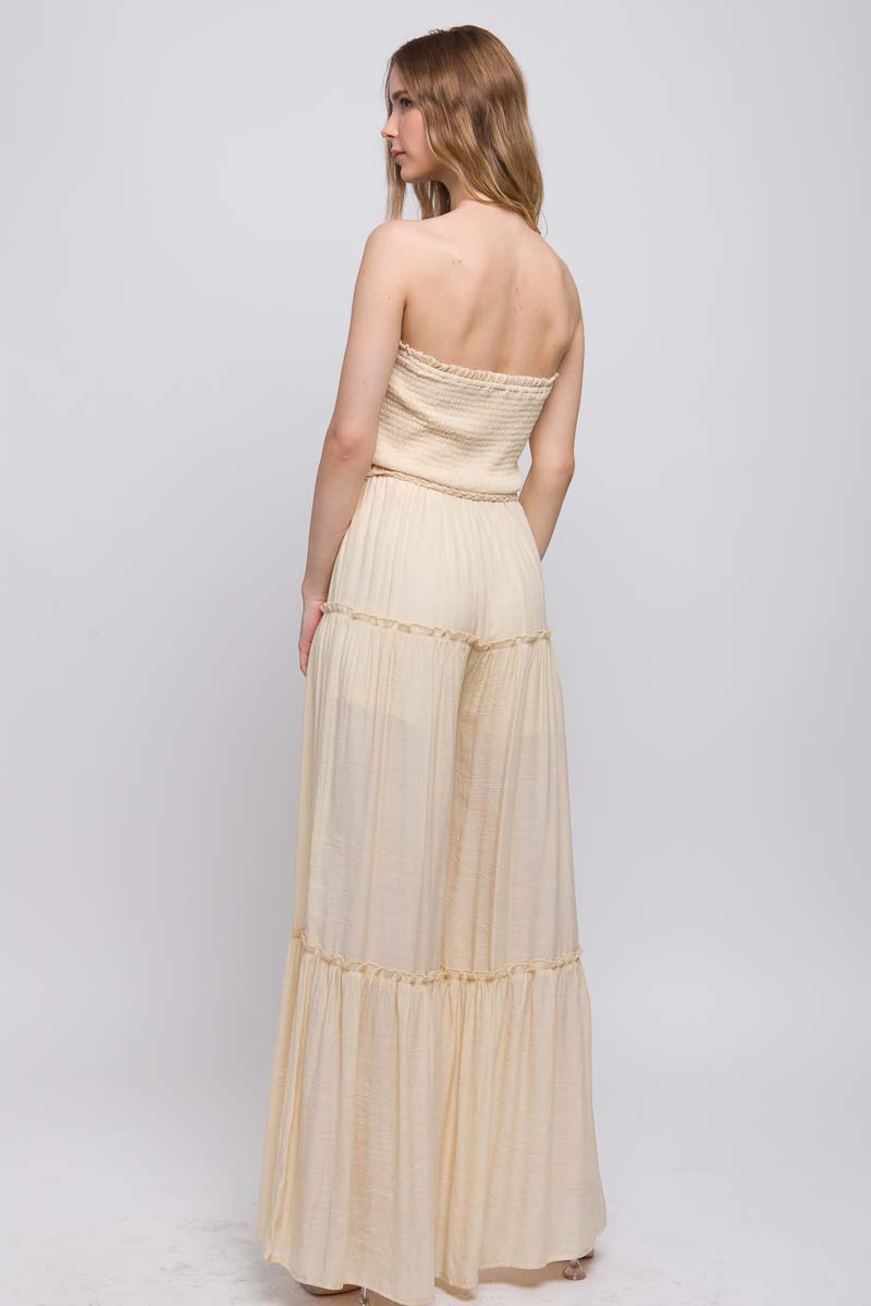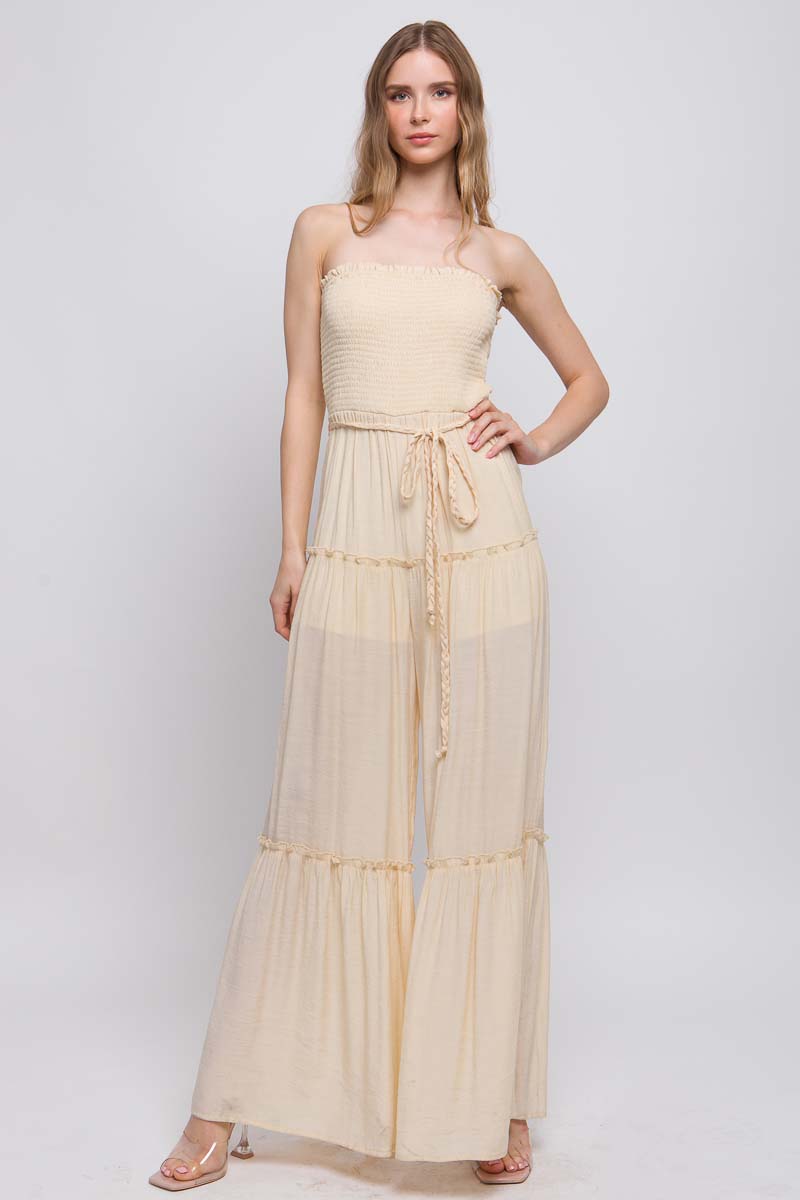 Woven Solid Sleeveless Smocked Ruffle Jumpsuit